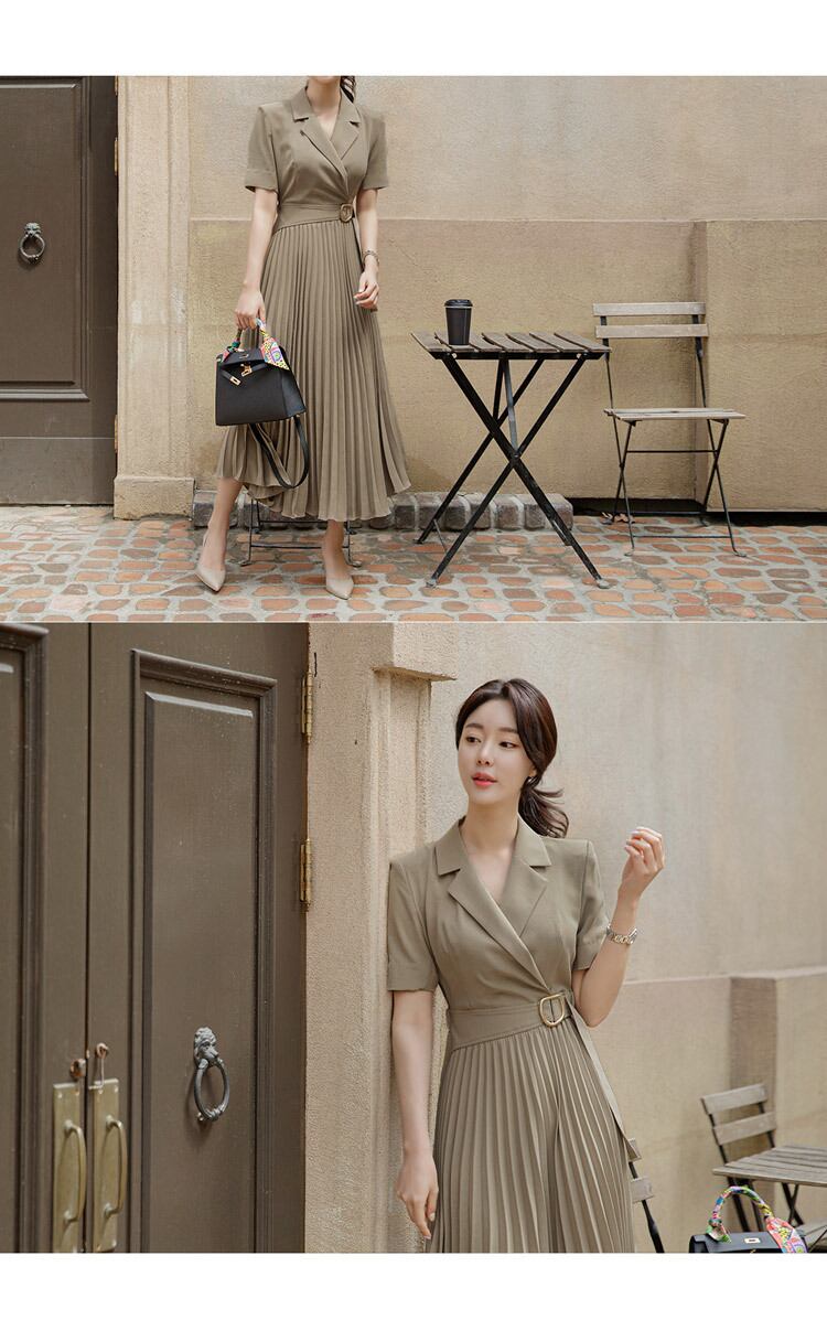 【新作】【送料無料】 SMTHMA2020サマープリーツノッチドレスレディースソリッド半袖レースアップオフィスシックなドレス ショート ハーフスリーブ 夏物 ソリッドカラー 会社 学校 通勤や通学にも AL Feminine223417673993 | Feminine