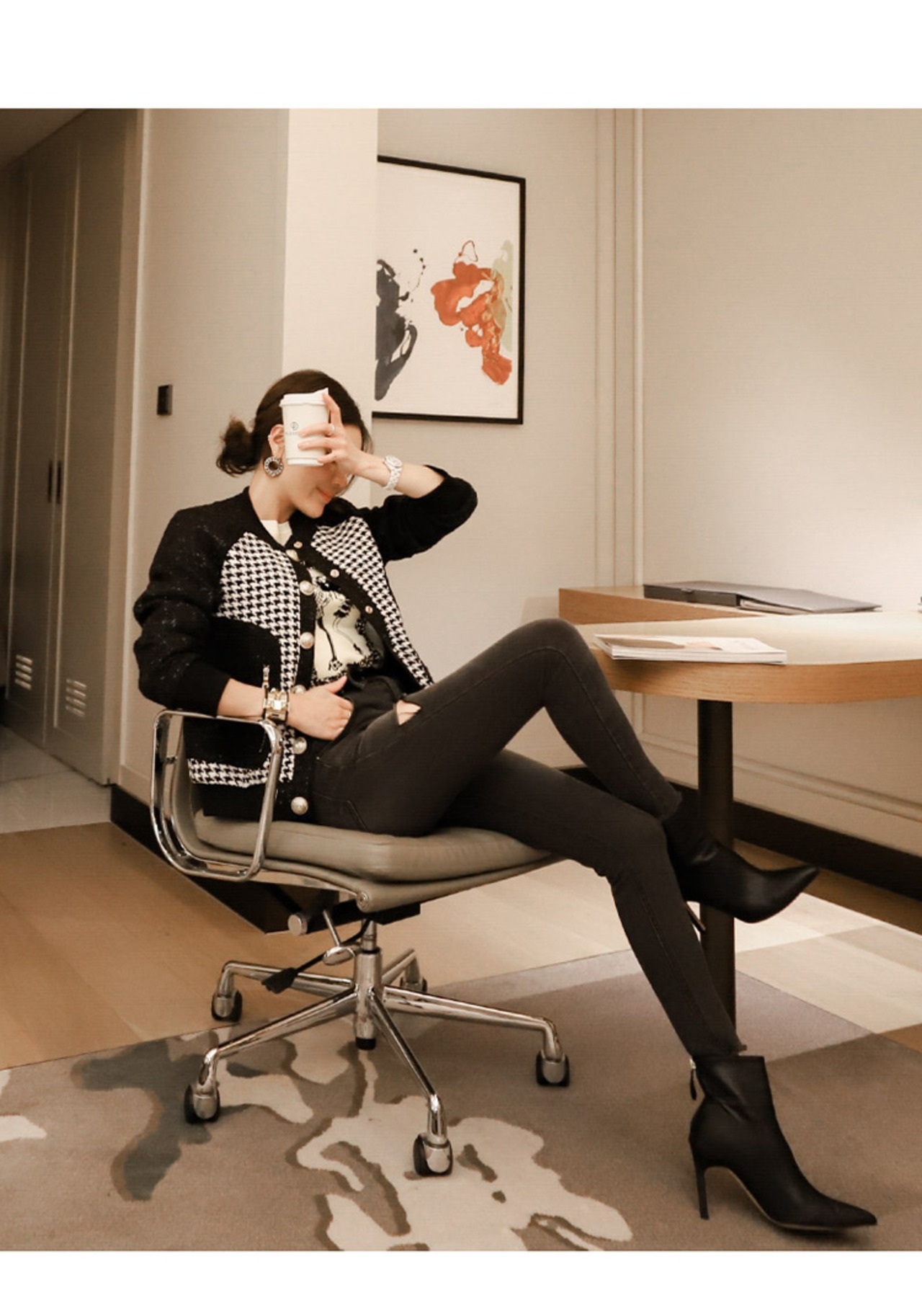 【新作】【送料無料】 SMTHMAシックなスタイルの冬の長袖千鳥格子パッチワークショートジャケットコートレディースシングルブレストアウター ロング ウィンター 冬物 AL Feminine276510657753 | Feminine
