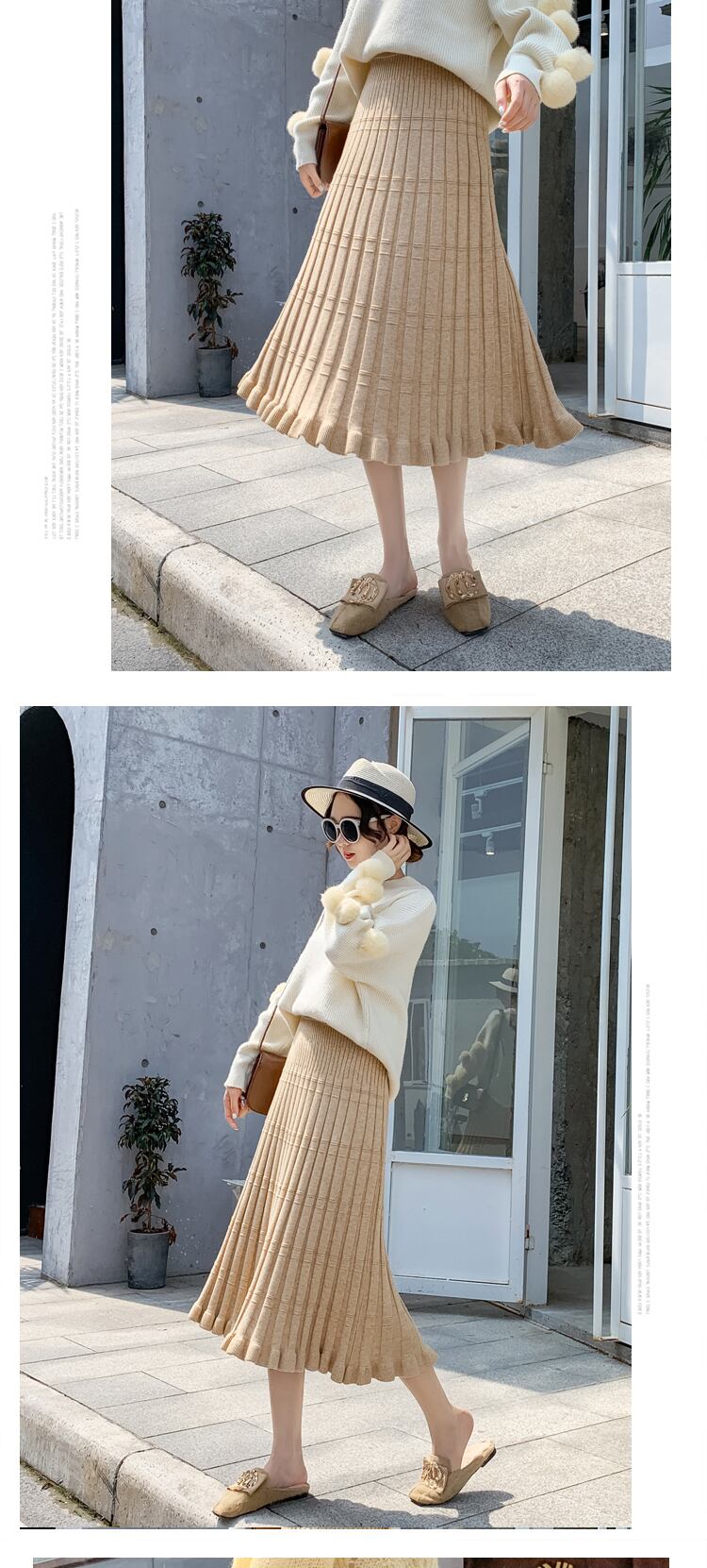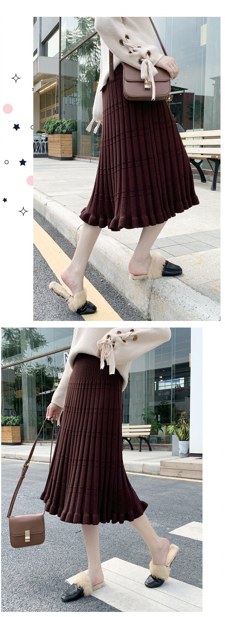 【新作】【送料無料】 SMTHMAウエストスカートレディースフリルプリーツセーターニットスカートウーマンエラスティックヴィンテージスカートファルダス 伸縮 ビンテージ AL Feminine234358250630 | Feminine