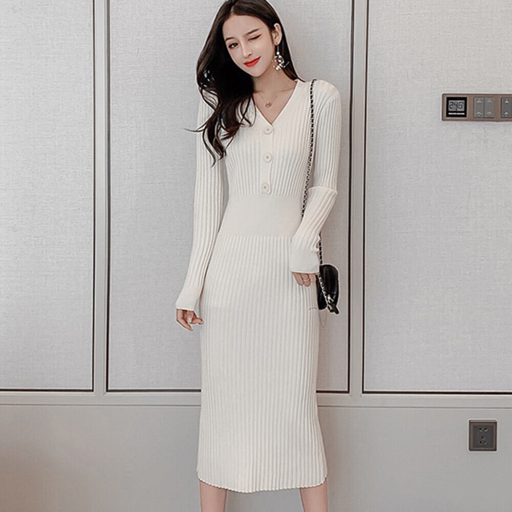 【新作】【送料無料】 ヴィンテージニットセータードレス女性ソリッドフルスリーブパーティードレスセクシーなVネックVestidos秋の春のドレス スプリング 春物 オータム 秋物 ソリッドカラー ビンテージ AL Feminine250110150473 | Feminine