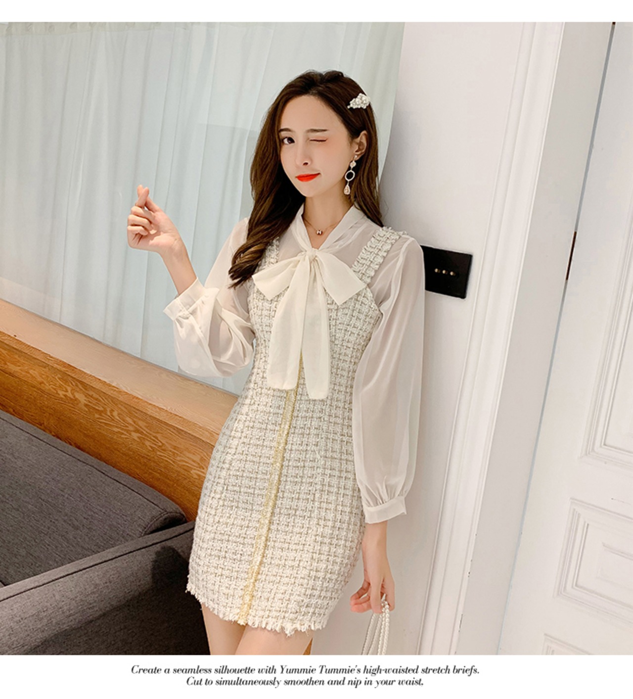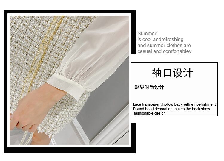 【新作】【送料無料】 SMTHMA2020秋のツーピーススーツセクシースパゲッティストラップツイードドレス+レディース長袖シフォンブラウスセット ロング オータム 秋物 AL Feminine211663636318
