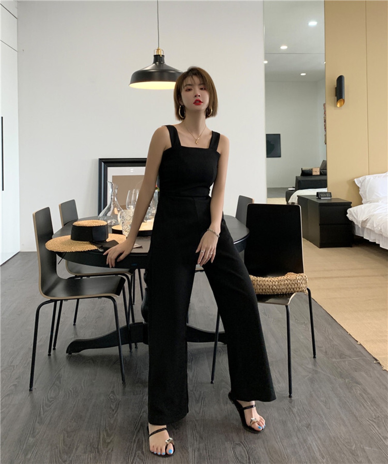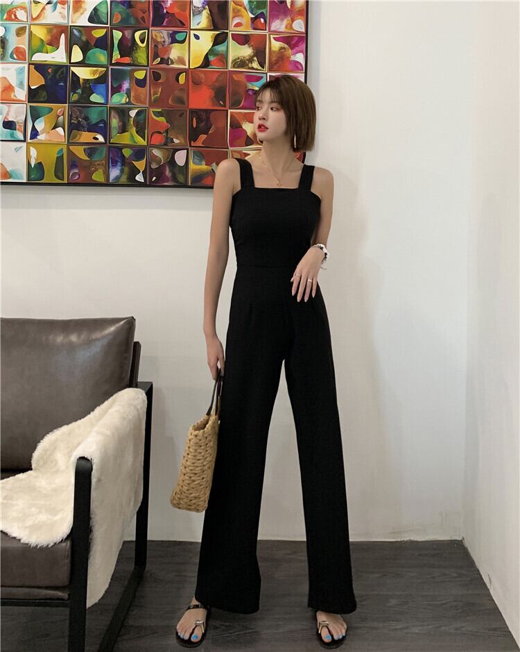 【新作】【送料無料】 SMTHMASummerJumpsuitブラックジャンプスーツレディースセクシーな背中の開いたジャンプスーツロンパースオーバーオールストラップソリッドロンパース サマー 夏物 ソリッドカラー AL Feminine214468460827 | Feminine