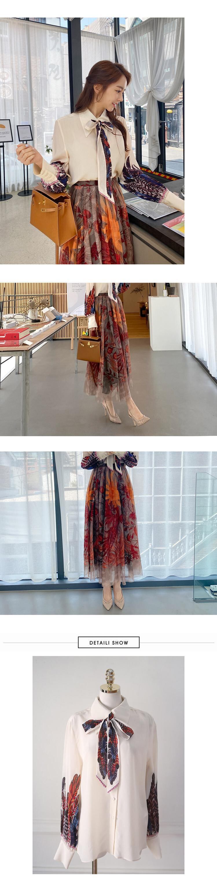 【新作】【送料無料】 SMTHMA-end2ピーススーツレディース2020スプリングボウ長袖シャツトップ+ウエストプリントマキシロングスカートオフィスセット リボン 春物 会社 学校 通勤や通学にも AL Feminine239990465147 | Feminine