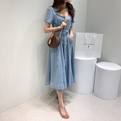【新作】【送料無料】 SMTHMAレディースロングデニムドレス2020年夏レーシングブルードレス半袖ウエストシックドレス ショート ハーフスリーブ サマー 夏物 AL Feminine276399720170 | Feminine