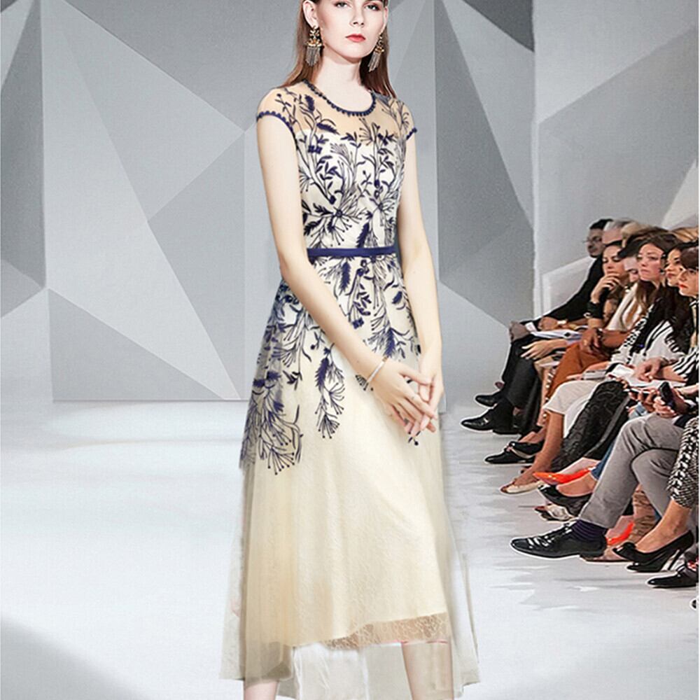 【新作】【送料無料】 SMTHMA2020-エンドビーズメッシュ刺繡ランウェイドレスレディースヴィンテージラウンドネックロングベスティドス 刺繍 Oネック ビンテージ AL Feminine277779531640 | Feminine