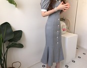 【新作】【送料無料】 SMTHMAオフィスシックな女性夏ヴィンテージトランペットマーメイドパーティードレスパフスリーブシングルブレストドレス サマー 夏物 ビンテージ 会社 学校 通勤や通学にも AL Feminine250008565863