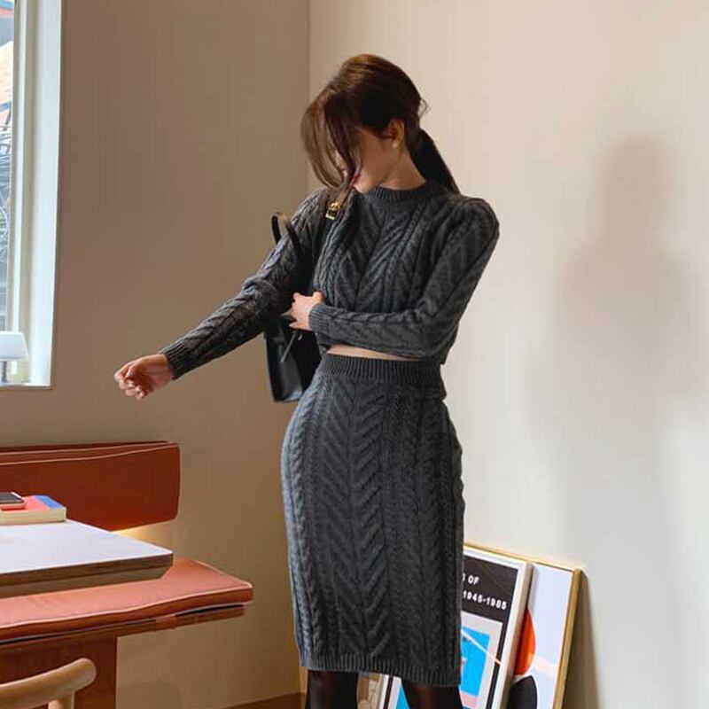 【新作】【送料無料】 SMTHMAツーピースセットニットレディーススカートスーツ秋冬厚手ウォームレディースショートセーター+ウエストニットスカートセット オータム 秋物 ウィンター 冬物 AL Feminine254883489987 | Feminine