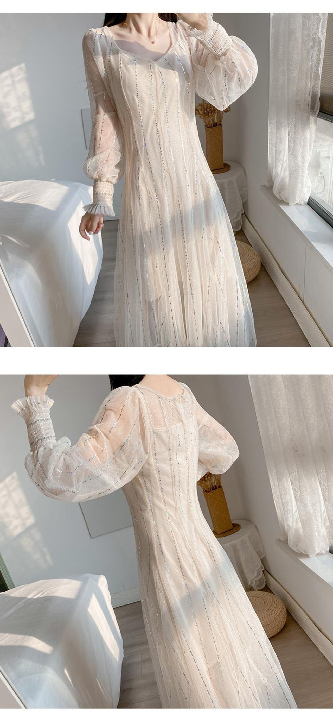 【新作】【送料無料】 SMTHMA2020到着女性マキシドレスメッシュ長袖スパンコール2ピースドレス春の女性のパーティードレスVestido ロング スプリング 春物 AL Feminine250053010600 | Feminine