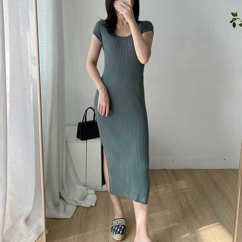 【新作】【送料無料】 SMTHMA2020ノースリーブソリッドヴィンテージ女性ドレスニットストレッチウエストドレスOネックボディコンVestidos ソリッドカラー ビンテージ AL Feminine27989507131