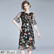 【新作】【送料無料】 SMTHMA2020ランウェイサマードレスレディースフレアスリーブフローラル刺繡メッシュホローアウトミディドレス 刺繍 夏物 花柄 AL Feminine285056527958 | Feminine