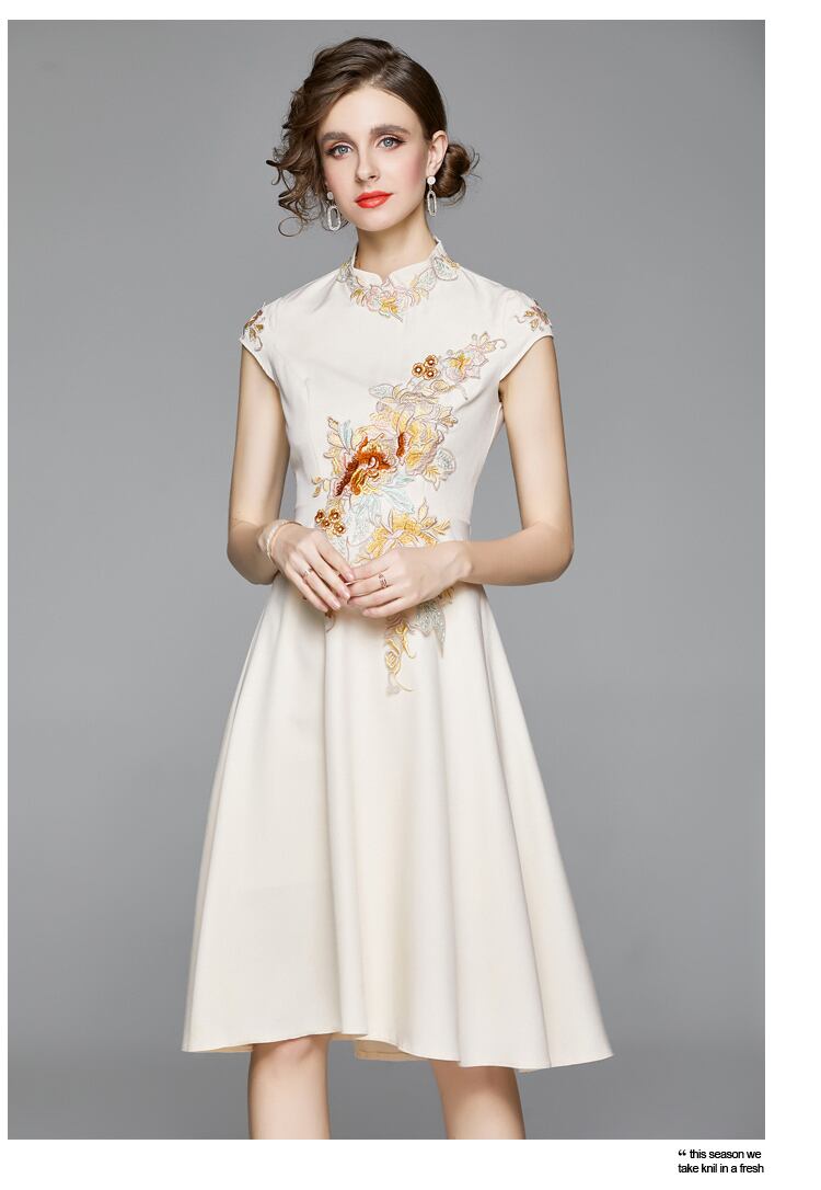 【新作】【送料無料】 SMTHMA2020サマーランウェイヴィンテージドレスレディーススタンドカラー刺繡フラワードレスVestidos 刺繍 夏物 フラワーデザイン ビンテージ AL Feminine232628676965 | Feminine