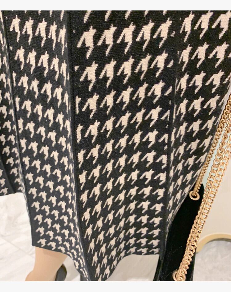 【新作】【送料無料】 SMTHMA長袖セータードレス女性厚手のニット秋冬スリム千鳥格子パッチワークVestidos ロング オータム 秋物 ウィンター 冬物 AL Feminine252181752867 | Feminine