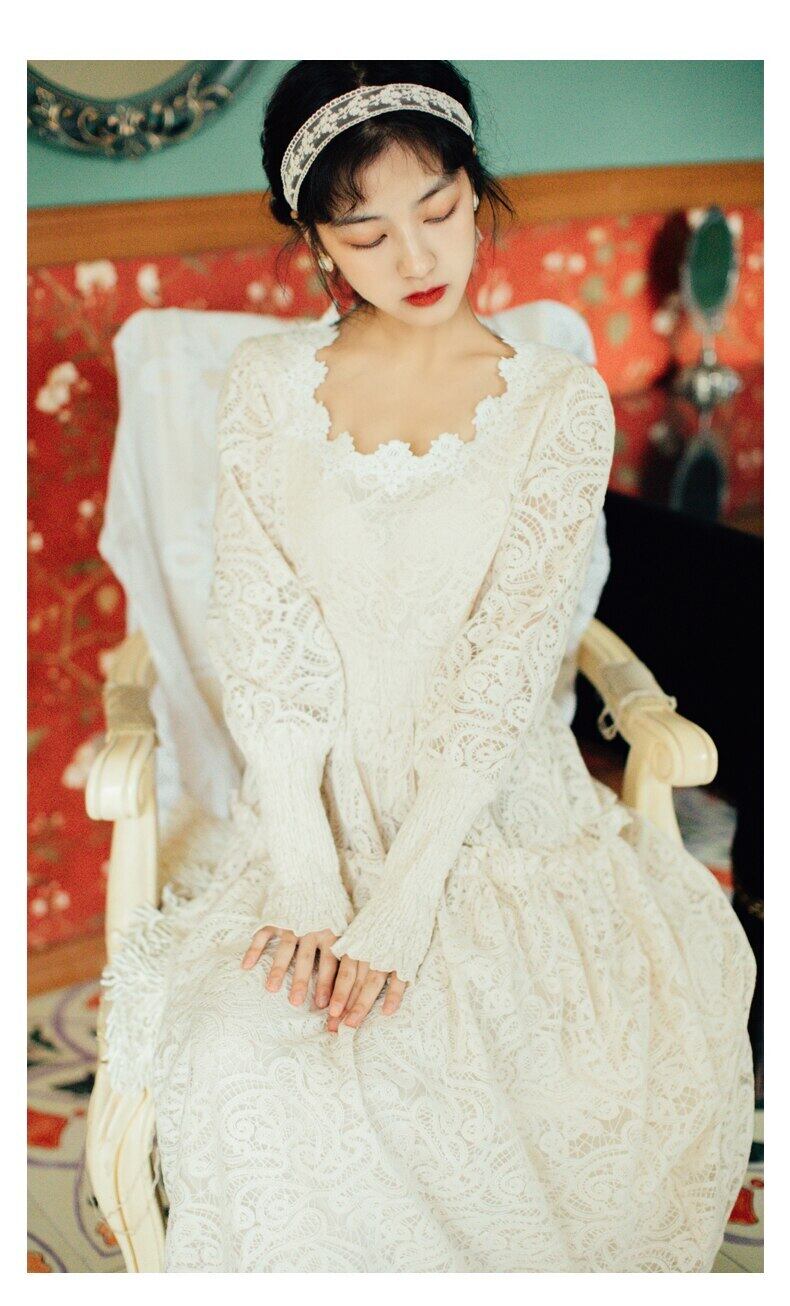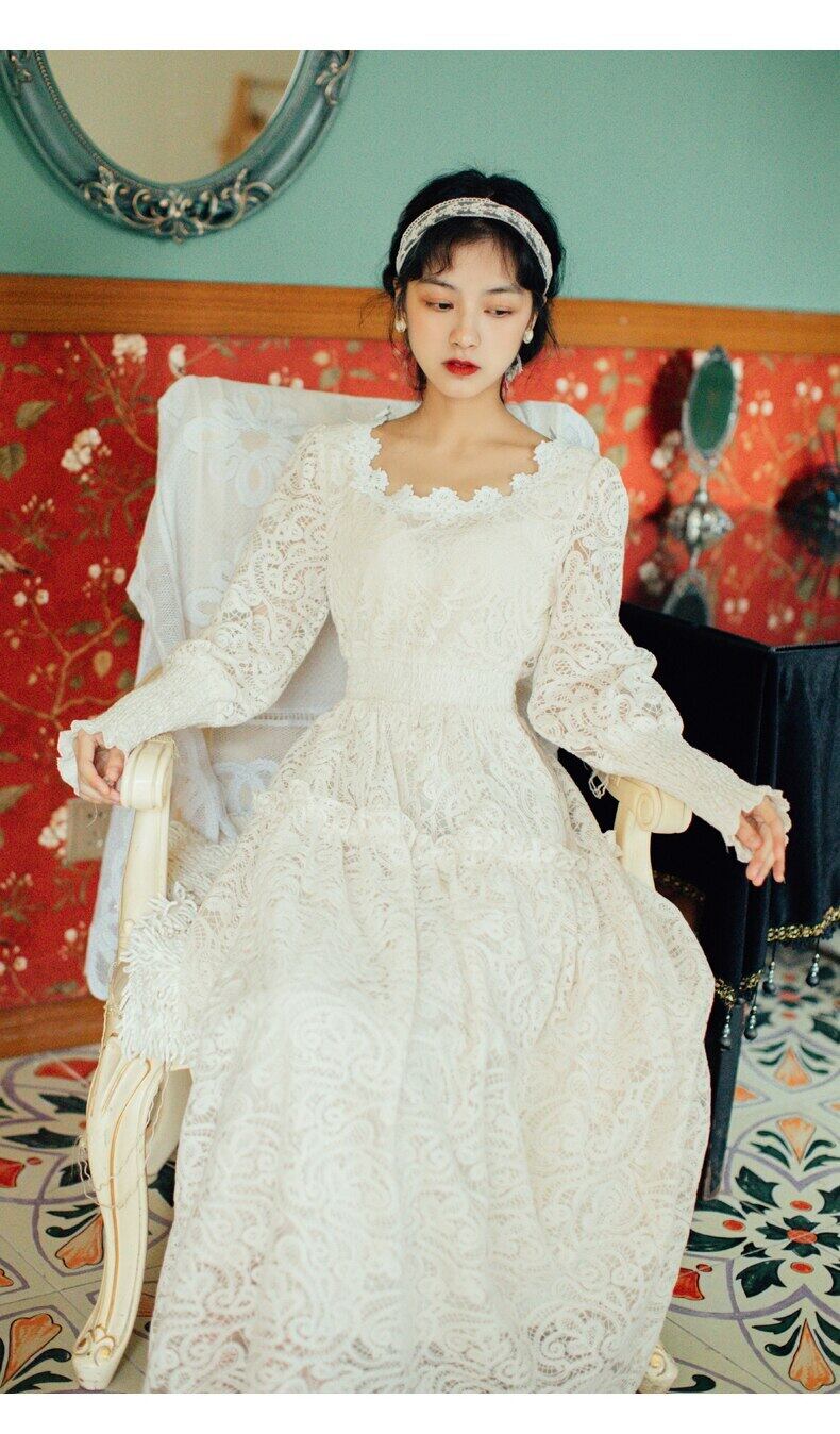 【新作】【送料無料】 SMTHMAランウェイマキシドレスレディース長袖レースホローアウトフリルヴィンテージパーティーVestidos ロング ラッフル ビンテージ AL Feminine278322173614 | Feminine