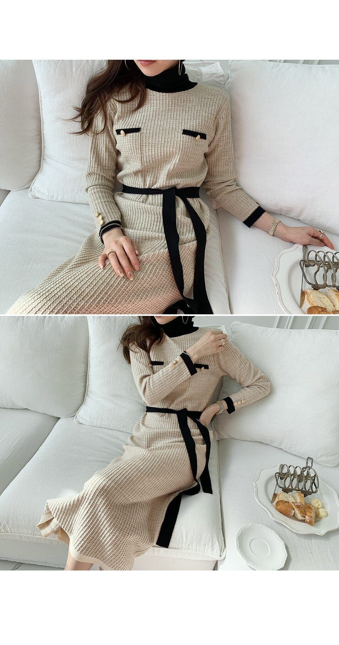 【新作】【送料無料】 シックなジョーカータートルネック編みドレスドレス Feminine131272667142