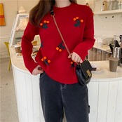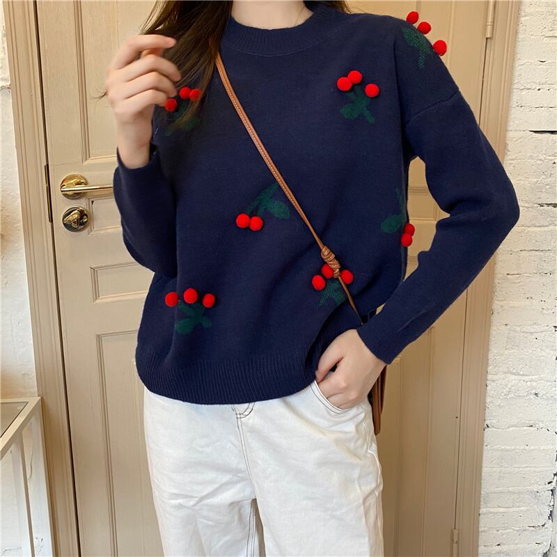 【新作】【送料無料】 立体的な重い甘い桜のボール長袖クリスマス風ニットプルオーバー ロング 大人ガーリー スウィート キュート カジュアル Feminine152296052004 | Feminine