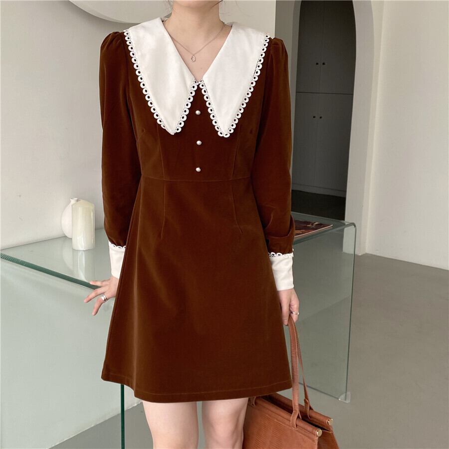 【新作】【送料無料】 映画!新しい冬のフランスのヘップバーン風ショーの中で薄い複合プルーシュドレススカートの赤ちゃんは肥厚をもたらしました ウィンター 冬物 Feminine157098977704 | Feminine