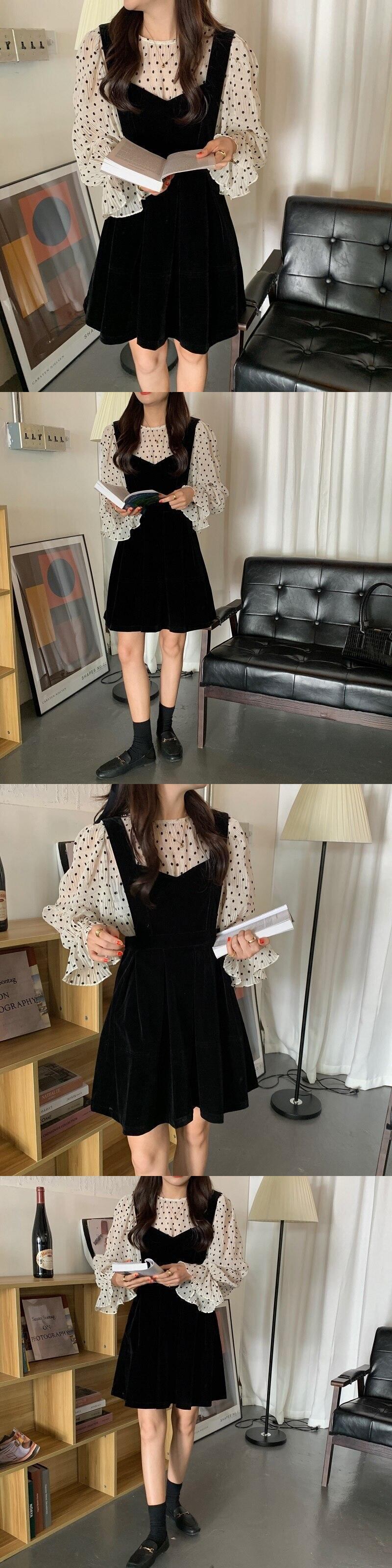 【新作】【送料無料】 年齢を減らします気の利いたベルベットブレーススカートレトロウェーブプリーツビターフリーバンビターフリーバンガーゼランタンスリーブトップスポット Feminine130453495080 | Feminine