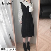 【新作】【送料無料】 レースパッチワークベルベットドレスミディロングランタンスリーブヴィンテージAラインスタンドカラー2021年春ローブパーティー スプリング 春物 ビンテージ Feminine119925654607 | Feminine