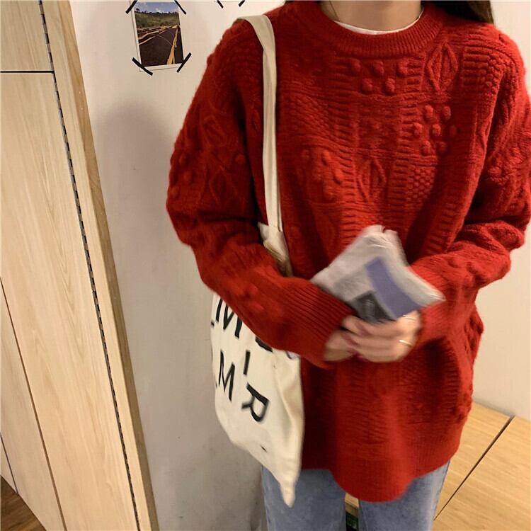 【新作】【送料無料】 赤いプルオーバーニットセーター女性クリスマス長袖プルソフト特大シック原宿冬2020秋Za ロング レッド かわいい オータム 秋物 ウィンター 冬物 Feminine148904485380 | Feminine