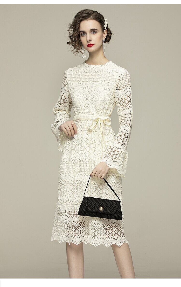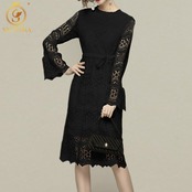 【新作】【送料無料】 SMTHMA春の女性フレアスリーブレース中空アウトドレススリムネクタイアップVestidoDa Festa スプリング 春物 AL Feminine262471534738 | Feminine
