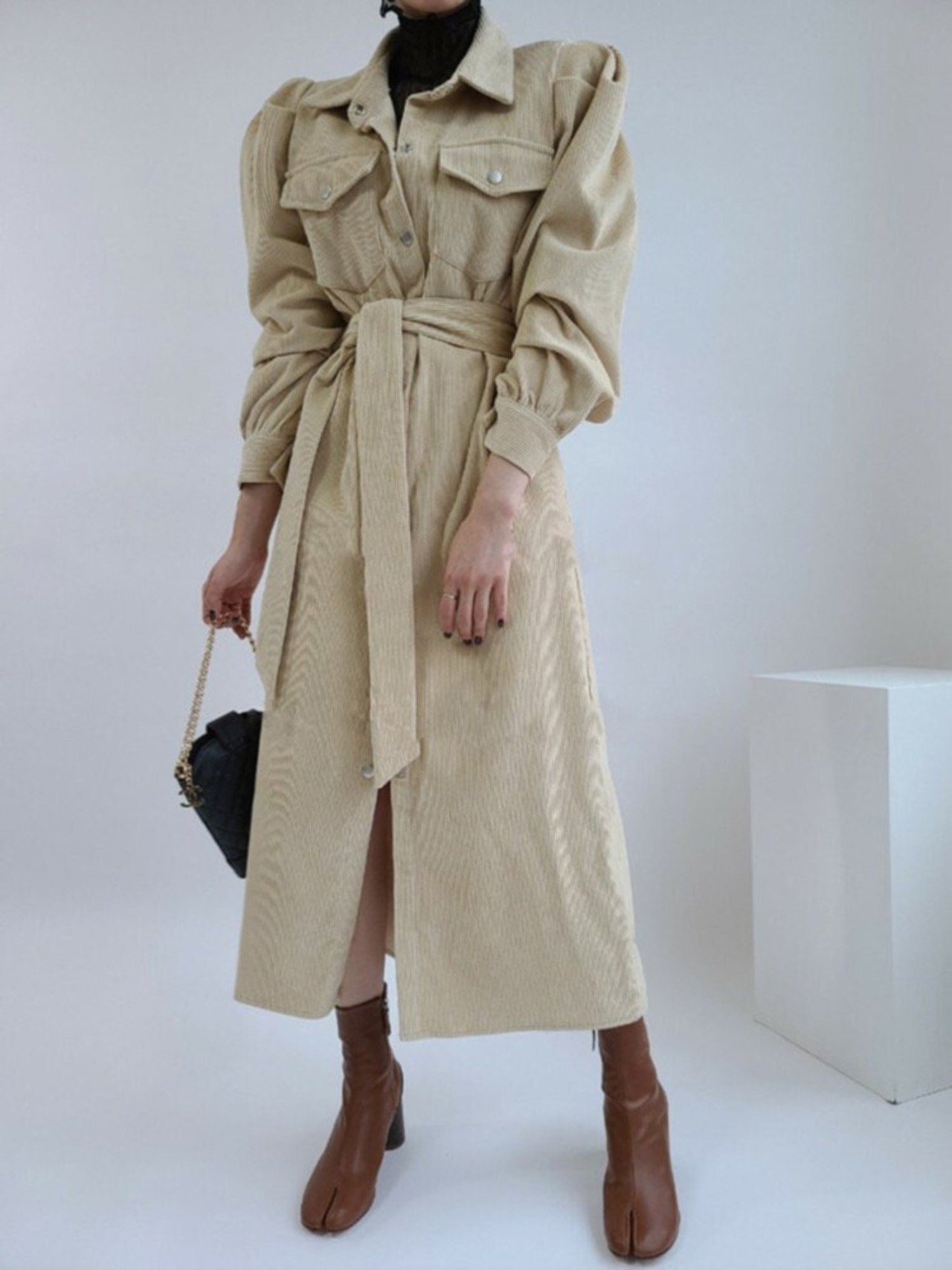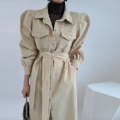 【新作】【送料無料】 SMTHMA春の女性ヴィンテージコーデュロイミディソリッドシャツドレスランタンスリーブVestidoDa Festa スプリング 春物 ソリッドカラー ビンテージ AL Feminine278401709595 | Feminine