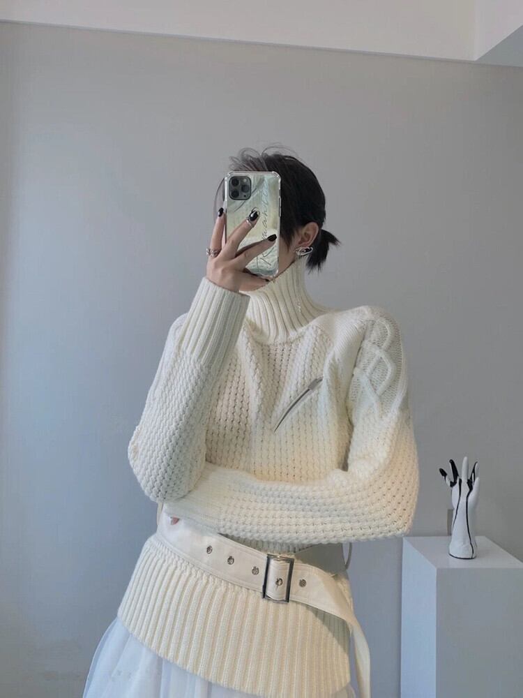 【新作】【送料無料】 SMTHMA秋冬女性タートルネック暖かいプルオーバーセーターヴィンテージ編み物無地ルーズジャンパー オータム 秋物 ウィンター 冬物 ソリッドカラー ビンテージ AL Feminine231086359571 | Feminine