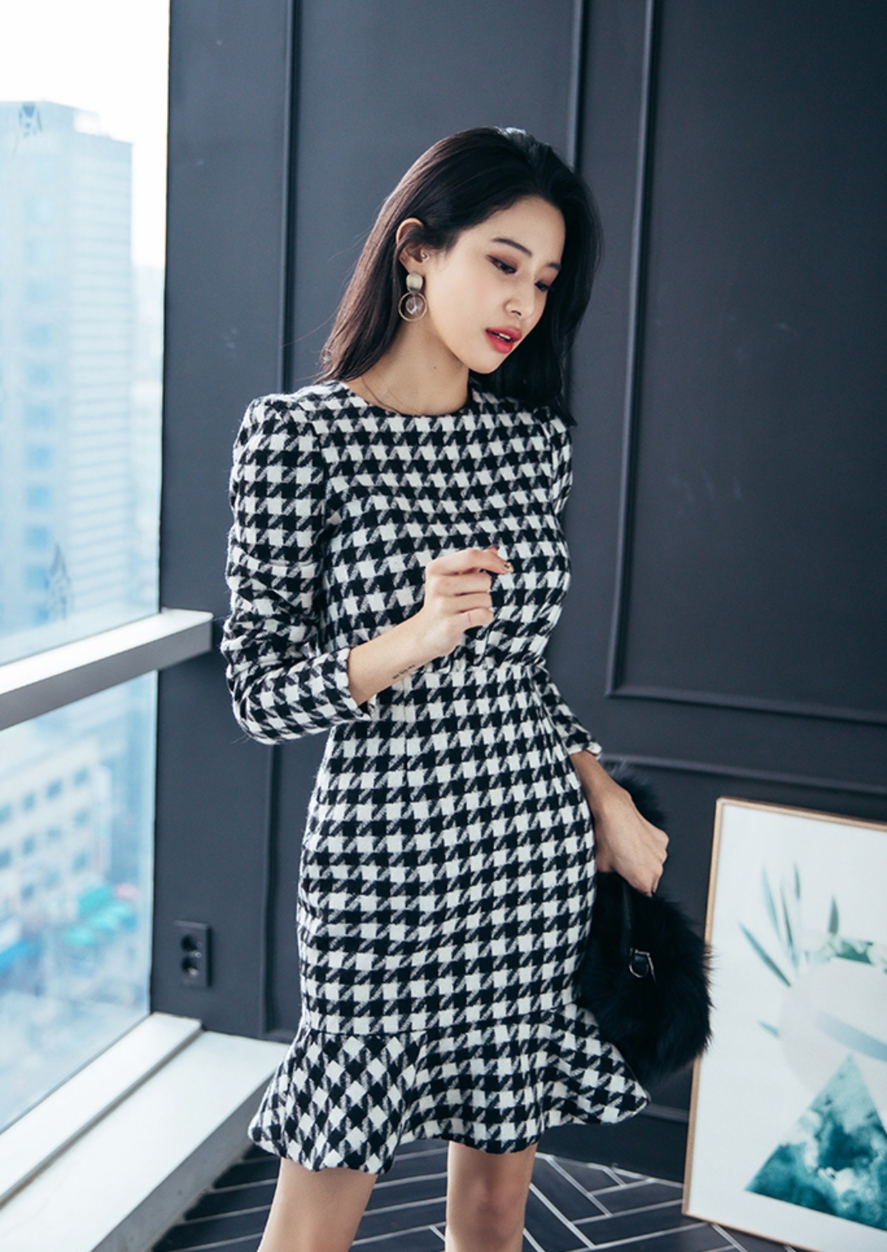 【新作】【送料無料】 SMTHMA春の女性千鳥格子トランペットマーメイドドレスシックなスリムヴィンテージVestidoDa Festa スプリング 春物 ビンテージ AL Feminine235382001303 | Feminine