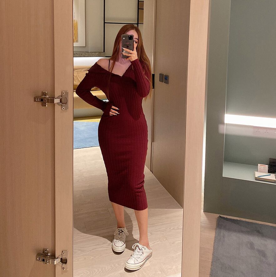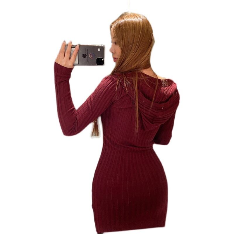 【新作】【送料無料】 SMTHMAヴィンテージ女性フード付きニットフルスリーブセーターミディドレス秋冬シングルブレストVestido オータム 秋物 ウィンター 冬物 ドレス ビンテージ AL Feminine235050872281 | Feminine