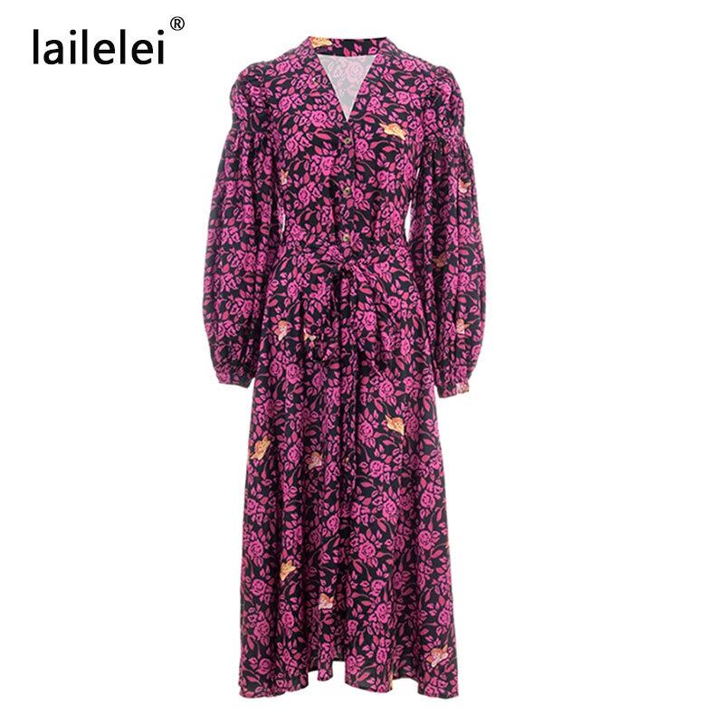 【新作】【送料無料】 2021年春夏ビーチホリデードレスレディースフローラルプリントVネックセクシーパーティー自由奔放に生きるロングドレスランタン長袖ローブ スプリング 春物 サマー 夏物 花柄 Feminine181376422037 | Feminine