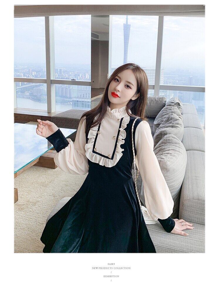 【新作】【送料無料】 SMTHMA春秋気質スリムウエストフリルドレスレディースシフォンパッチワークベルベットブラックヴェスティドダフェスタ スプリング 春物 オータム 秋物 AL Feminine229549003520 | Feminine