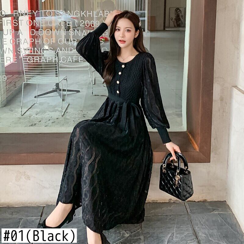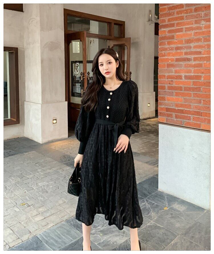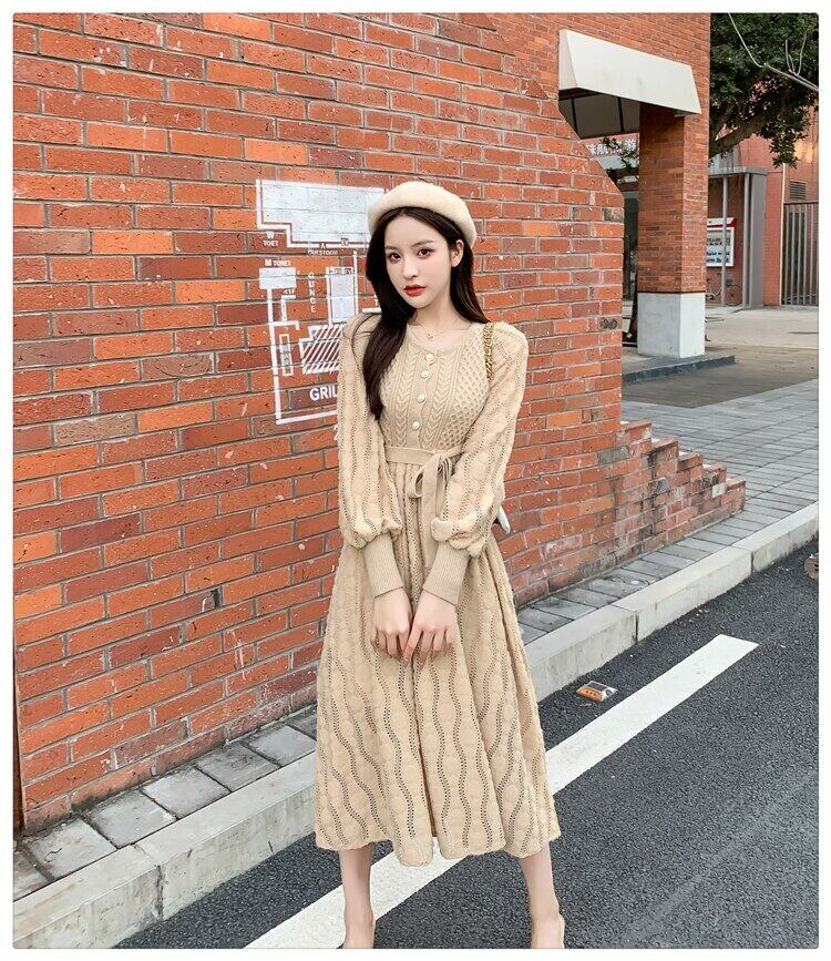 【新作】【送料無料】 SMTHMA秋冬気質厚みのあるランタンスリーブパッチワークドレスレディーススリムシングルブレストレースアップVestidos オータム 秋物 ウィンター 冬物 AL Feminine269913571928 | Feminine