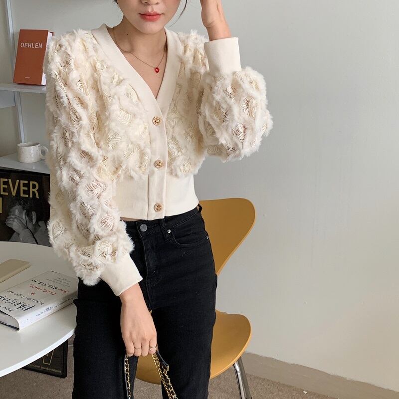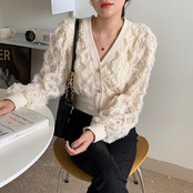 【新作】【送料無料】 フレンチレースの髪の気質を立体的にジャカードでくり抜いて小さな甘い風のVネックを繊細な短い段落にします 大人ガーリー スウィート キュート カジュアル Feminine137092418801 | Feminine