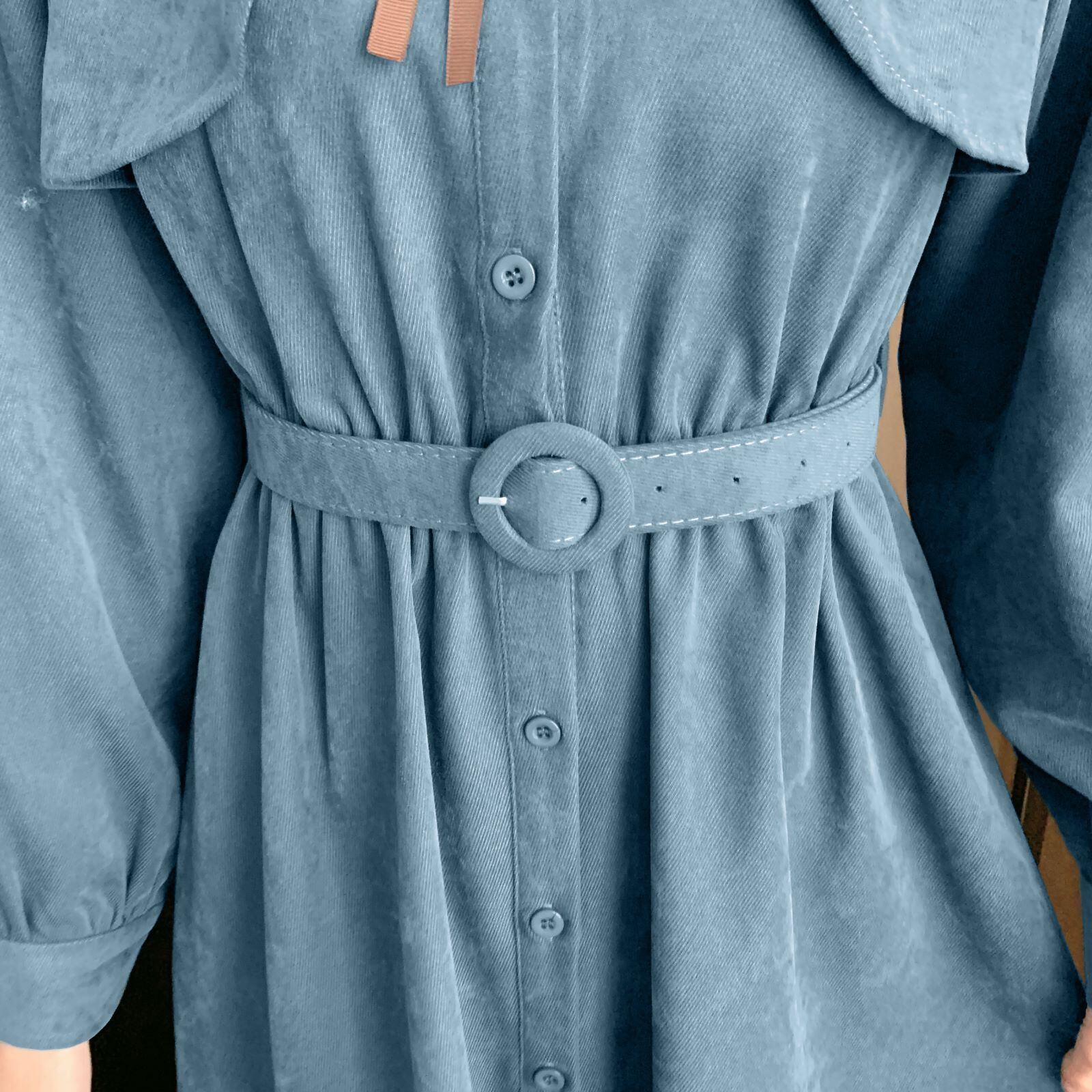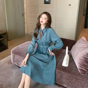 【新作】【送料無料】 春のターンダウンカラーレースアップコーデュロイ長袖ドレス女性無地AラインミディVestidos ロング スプリング 春物 ソリッドカラー AL Feminine222652556233 | Feminine