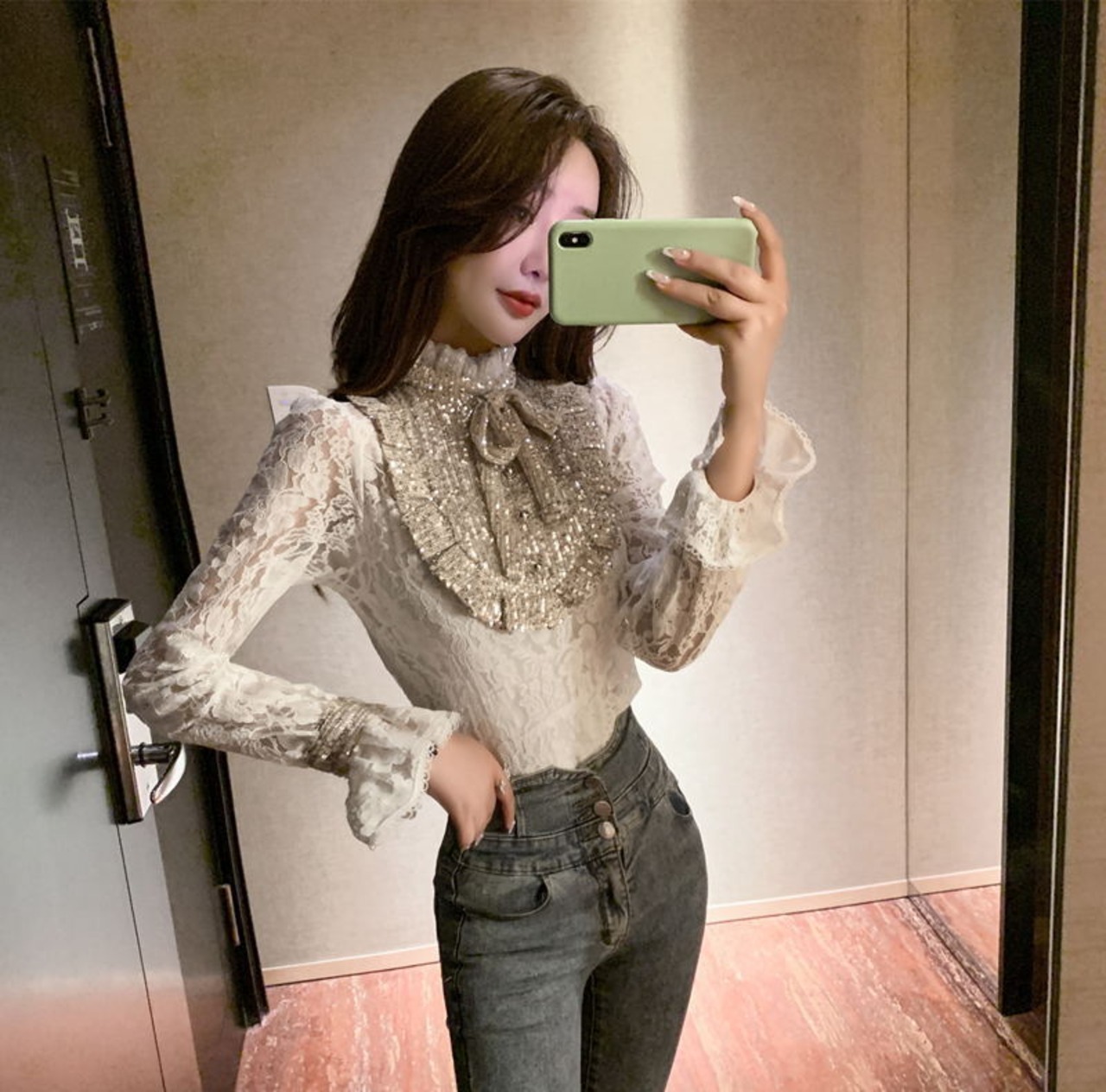 【新作】【送料無料】 SMTHMA2021春秋レディースブラウスシャツフレアスリーブスタンドカラースパンコールボウレディレーストップス リボン スプリング 春物 オータム 秋物 AL Feminine236492456089 | Feminine