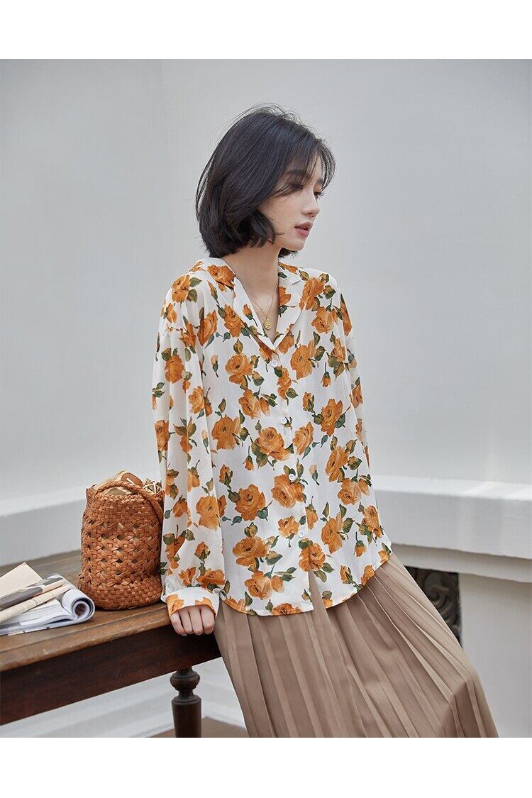 【新作】【送料無料】 SMTHMA2021レディース春秋ブラウスシャツルーズVネックシフォンプリントOLレディワイルドトップス スプリング 春物 オータム 秋物 会社 学校 通勤や通学にも AL Feminine225064820121 | Feminine