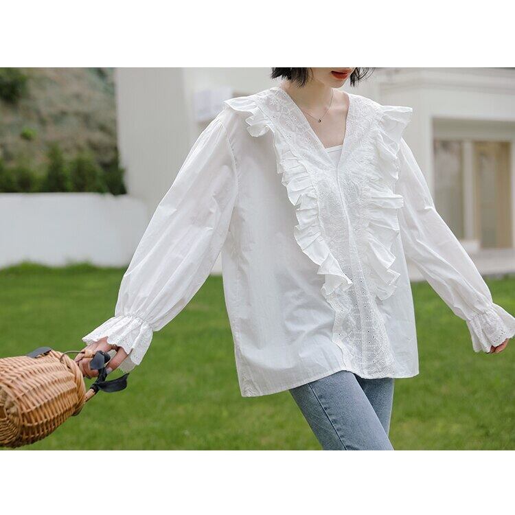 【新作】【送料無料】 SMTHMA2021レディース春ブラウスシャツフリルフレアスリーブレースルーズワイルドトップス ラッフル スプリング 春物 AL Feminine262076386716 | Feminine