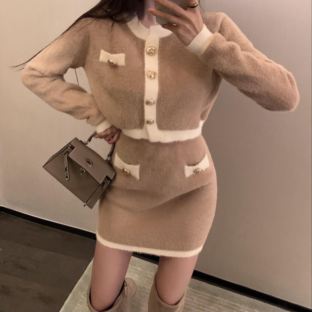 【新作】【送料無料】 ハンエディションショーシンエアフレグランスメイクファームは、新しい冬の編み物ドレスカーディガン編みスカートを提供しています ウィンター 冬物 Feminine165886349126 | Feminine