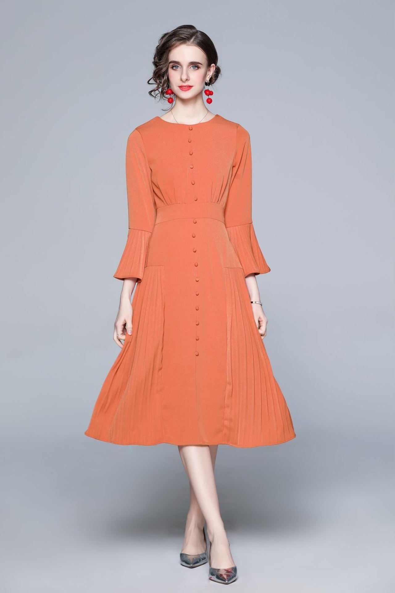 【新作】【送料無料】 SMTHMA春フレアスリーブパーティードレス女性シングルブレストヴィンテージミディプリーツVestidos スプリング 春物 ビンテージ AL Feminine267923093073 | Feminine