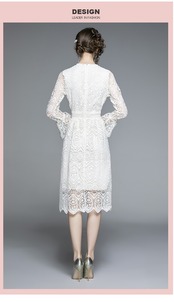 【新作】【送料無料】 SMTHMAオータムランウェイセクシーレースロングドレスレディースフレアスリーブOネックホローアウトVestidoDa Festa 秋物 AL Feminine242752895142 | Feminine