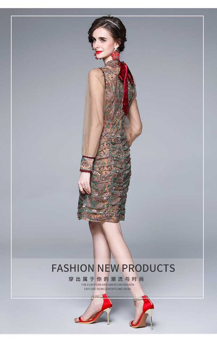 【新作】【送料無料】 2021年春ヴィンテージ滑走路ドレス女性弓長袖メッシュ刺繡花Aライン気質Vestidos ロング リボン 刺繍 スプリング 春物 フラワーデザイン ビンテージ AL Feminine212895374164 | Feminine