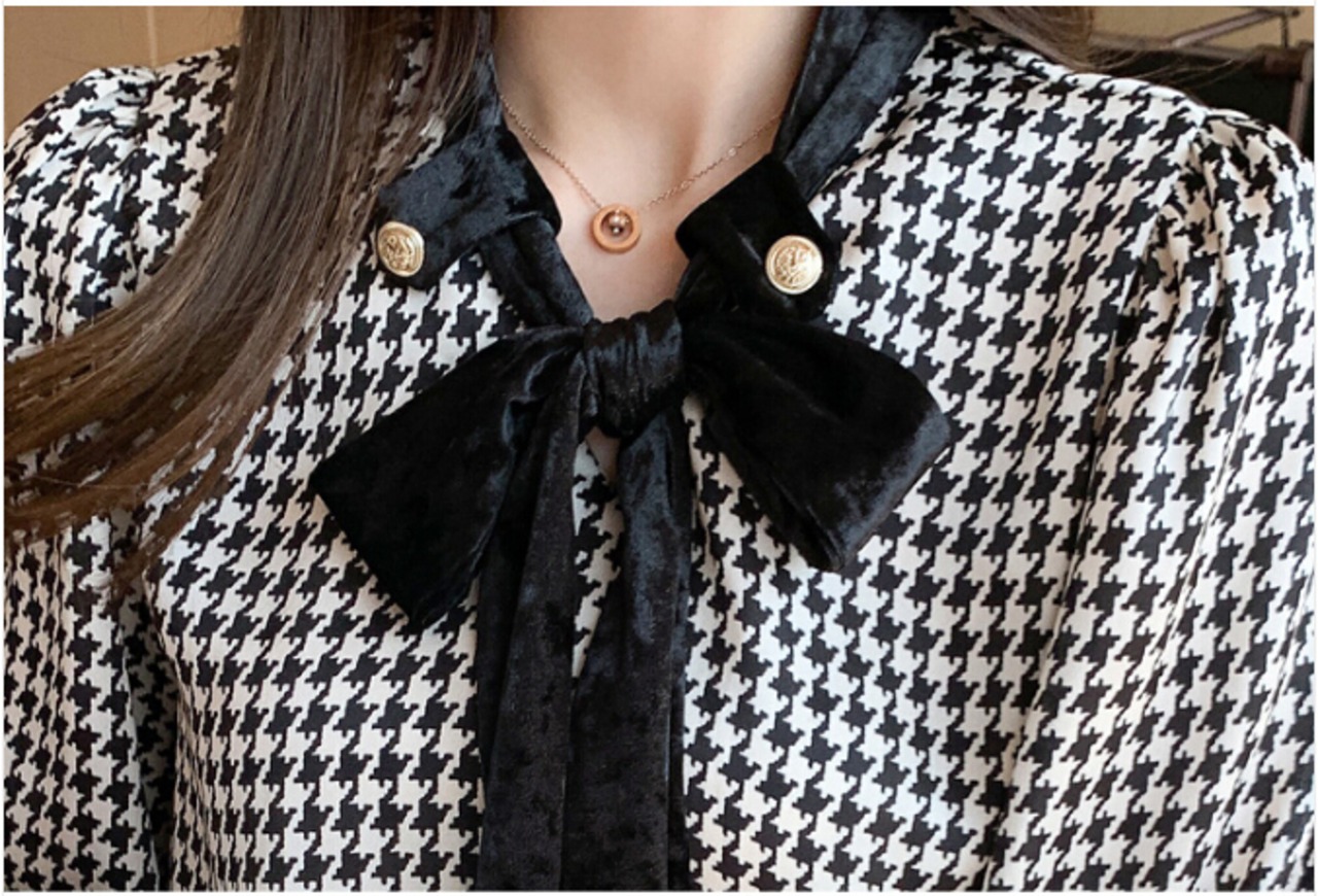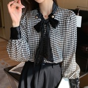 【新作】【送料無料】 SMTHMAブラック千鳥格子春秋女性OLOL長袖シャツVネックブラウス2021 ロング スプリング 春物 オータム 秋物 会社 学校 通勤や通学にも AL Feminine25978781884 | Feminine