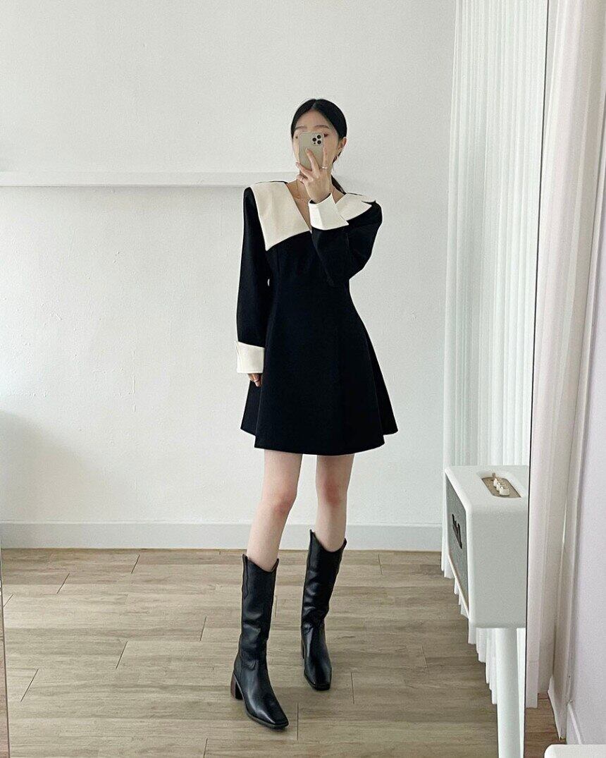 【新作】【送料無料】 不規則な襟の黒のドレスミニオフィスエレガントな長袖Aラインパーティー2021春秋新着シックなショートドレス ロング ブラック スプリング 春物 オータム 秋物 会社 学校 通勤や通学にも Feminine137480926699 | Feminine