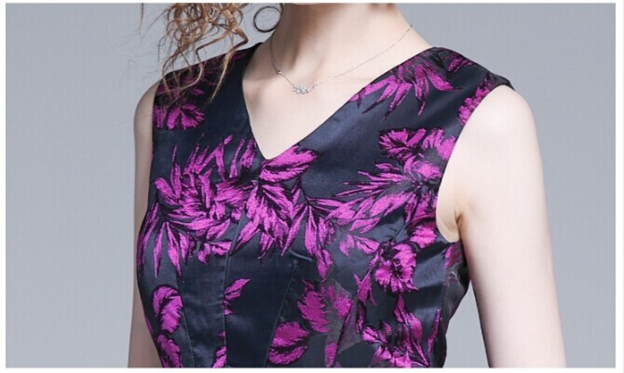 【新作】【送料無料】 SMTHMA春夏パープルジャカードドレスセクシーなVネックノースリーブレースアップスリムウエストVestidos スプリング 春物 サマー 夏物 AL Feminine216506279553 | Feminine